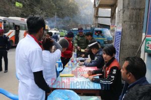 राजमार्गमा सवारी चालकको स्वास्थ्य परिक्षण गरिदै । तस्विर : पाविलन्यूज डटकम