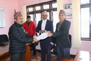 स्थानीय तहको नीति निर्माणको बारेमा नागरिक समाज संस्थाको सहभागीता गर्नका लागि जिल्ला समन्वय समिति धादिङका प्रमुख जगन्नाथ नेपाललाई ध्यानाकर्षण पत्र बुझाइदै । तस्विर : पाविलन्यूज डटकम