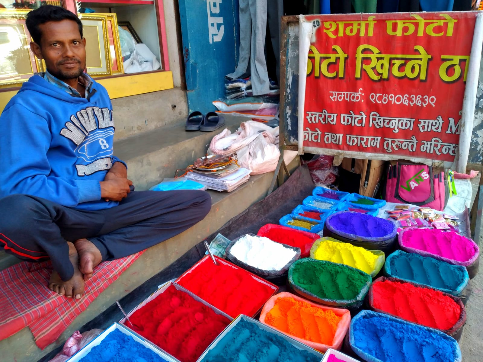 धादिङबेसीको साँगुरो सडक पेटीको ठाउँमा ठाउँमा सप्तरंगी टिका बेच्न बसेका धेरै छन् । कसैकोमा ग्राहक धेरै जान्छन् त कसैकोमा खाली हुन्छ । तीनै व्यापारी मध्येका अर्का हुन् । अरविन्द कुमार दास । उनी सर्लाही देखि टिका बेच्नकै लागि धादिङबेसी आएका छन् । एक चम्चाको १० रुपिँयाको दरले सप्तरंगी टिका बिक्रि गर्दा राम्रै आम्दानी हुने गरेको दासको अनुभव छ ।