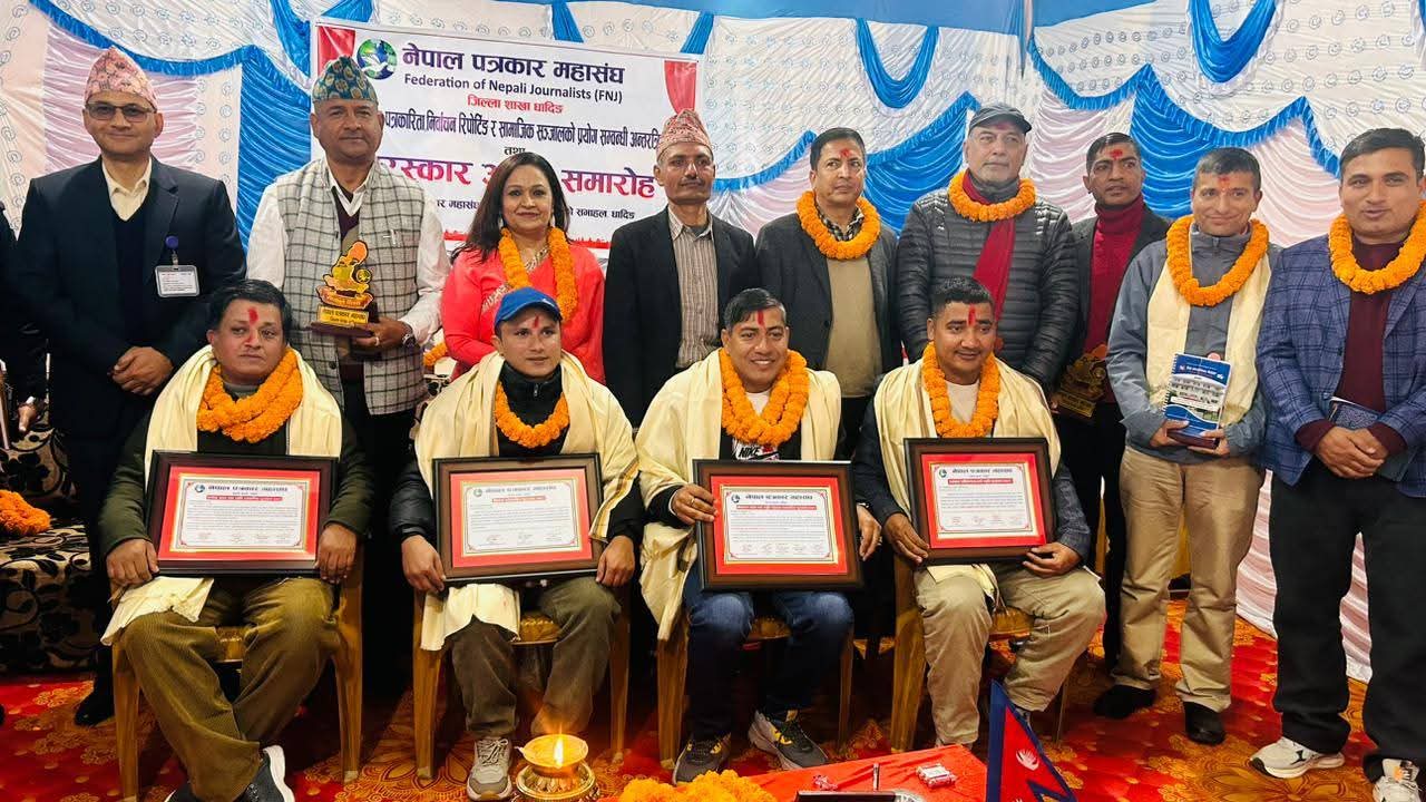 धादिङ । नेपाल पत्रकार महासङ्घ धादिङले छुट्टाछुट्टै विधामा चार जना सञ्चारकर्मीहरुलाई पुरस्कृत गरेको छ ।