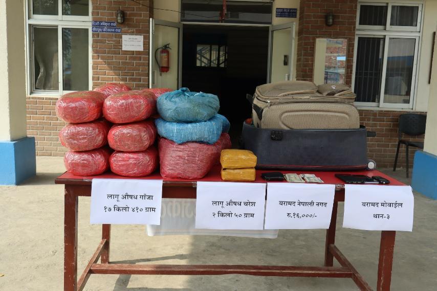 शंकास्पद अवस्थामा रहेको सुटकेस र झोलाभित्र लुकाइराखेको उक्त परिमाणको लागूऔषध फेला परेको हो । प्रहरीले घटनास्थलबाट लागूऔषधका साथै १६ हजार नेपाली रुपैयाँ नगद र दुई थान मोबाइल समेत बरामद गरेको छ ।