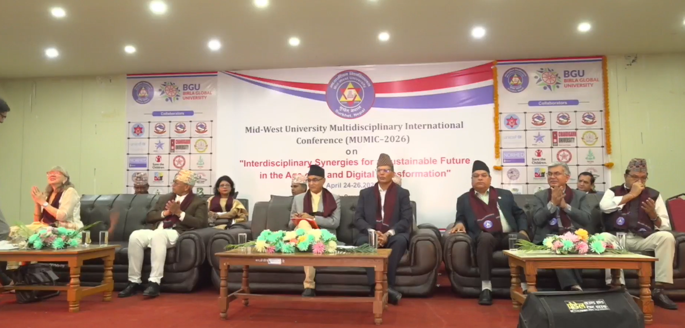 कर्णाली । कर्णाली प्रदेशको राजधानी सुर्खेत वीरेन्द्रनगरस्थत मध्यपश्चिम विश्वविद्यालयमा ‘बहुविषयगत अन्तरराष्ट्रिय सम्मेलन–२०२६’ उद्घाटन भएको छ ।